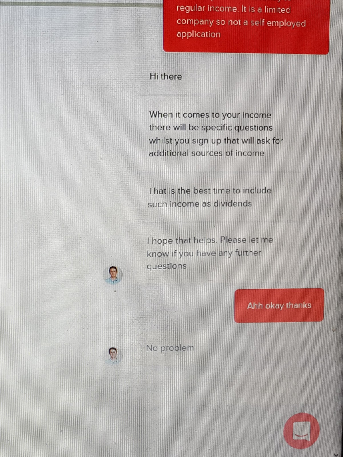 One of the questions isn't clear which is the 'How much do you earn each year? Please enter your total income before tax' I wasn't sure whether this was joint income or just my income. Husband also receives dividends and it doesn't make it clear whether these should be included. I only put my income in and once I clicked continue I couldn't find any way to go back a page. I had to go back to the beginning and start a new process. I wasn't sure about dividends so asked the question via live chat, they were quick coming back to me and advised it is just normal income without dividends. I think they could do with a little button next to this with more info advising it is the joint income and without and other income from other sources.